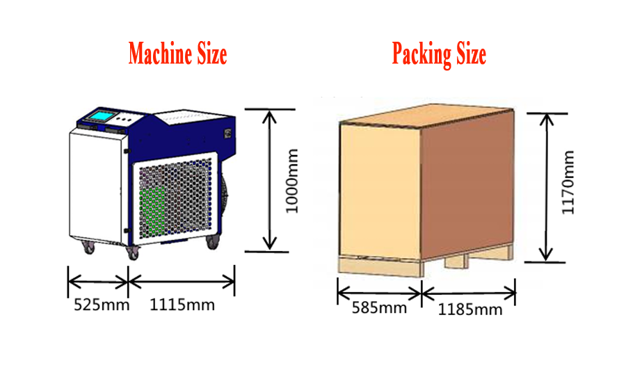 With dimensions of 1115× 525 × 1000 mm and a net weight of 78.5 kg, the SCHYTJ-3000 offersa compact yet powerful solution for heavy-duty laser operations. Packagedsecurely at 1185 × 585 × 1170 mm (gross weight: 94 kg), it isdesigned for easy installation and reliable transport.